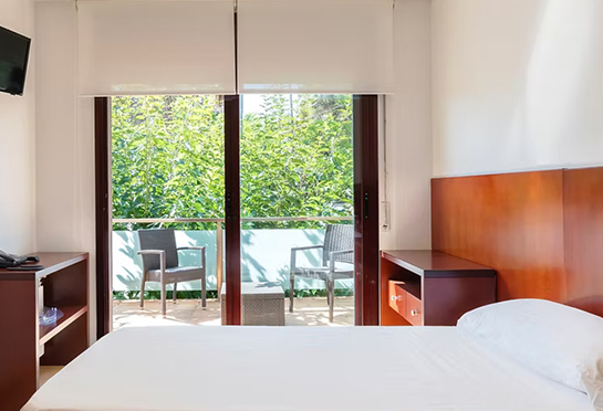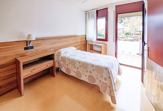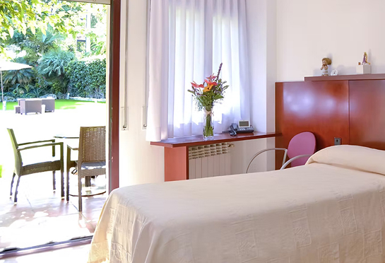 Ofrecemos habitaciones individuales y dobles, algunas con acceso directo al jardín o terraza privada.