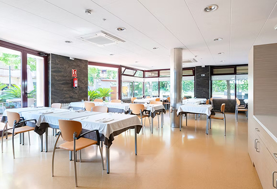 Contamos con un comedor luminoso, adaptado a personas con movilidad reducida, donde se sirve alimentación elaborada en cocina propia y con menús personalizados según las necesidades dietéticas.